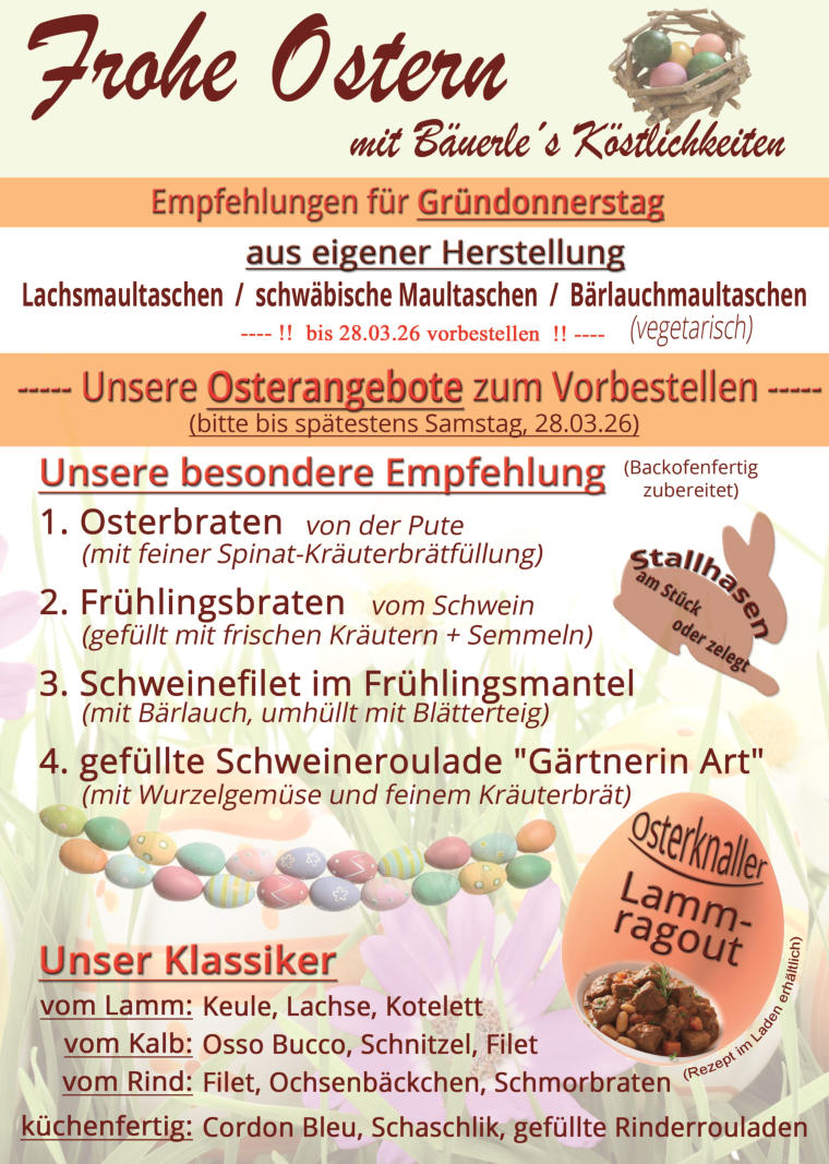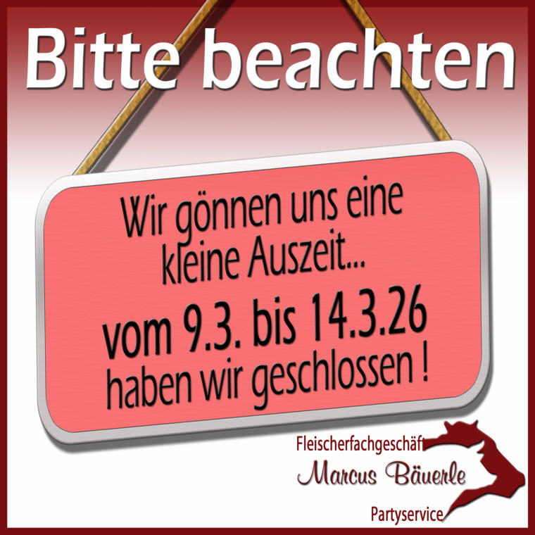 vom 09.03. bis 14.03.26 haben wir geschlossen